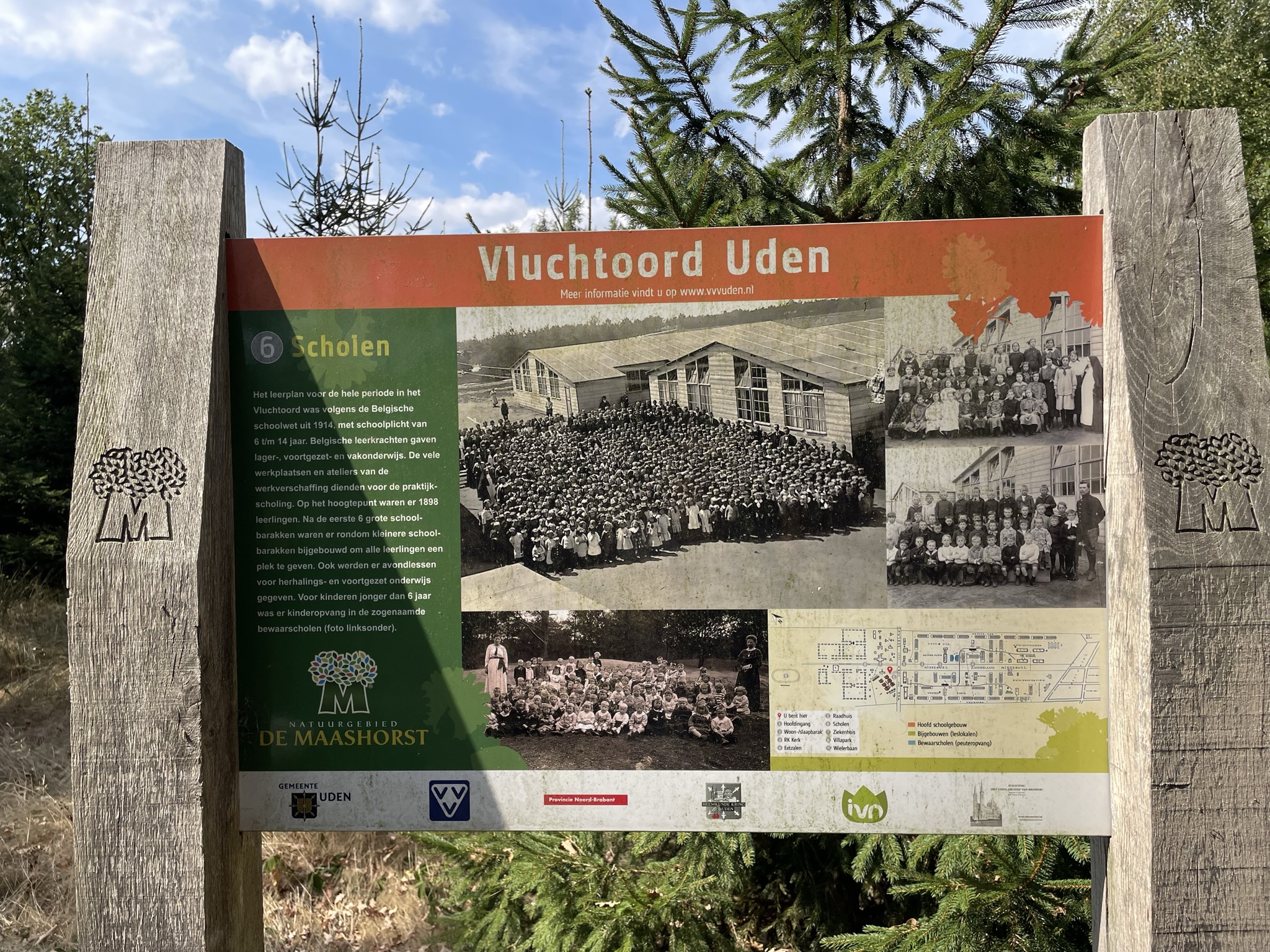 Belgische leerkrachten gaven leerlingen van 6 tot en met 14 jaar lager-, voortgezet- en vakonderwijs in Vluchtoord. De vele werkplaatsen en ateliers van de werkverschaffing dienden voor de praktijkscholing. Op het hoogtepunt waren er 1.898 leerlingen. Na de eerste zes grote schoolbarakken waren er rondom Vluchtoord kleinere schoolbarakken bijgebouwd om alle leerlingen een plek te geven. Ook werden er avondlessen voor herhalings- en voorgezet onderwijs gegeven. Voor kinderen jonger dan 6 jaar was er kinderopvang in de zogenaamde bewaarscholen.